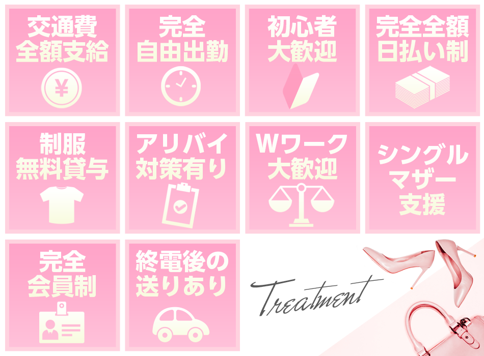 A 当店では働く女性を外注費として処理をしております。ですので本業の方にバレる事は一切ありませんのでご安心下さい。